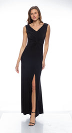 This dress effortlessly combines contemporary fashion with timeless elegance. The V-neck and knot front detail add a modern touch. while the flowing silhouette creates a flattering look. Ideal for formal events and special occasions. it radiates grace and confidence.